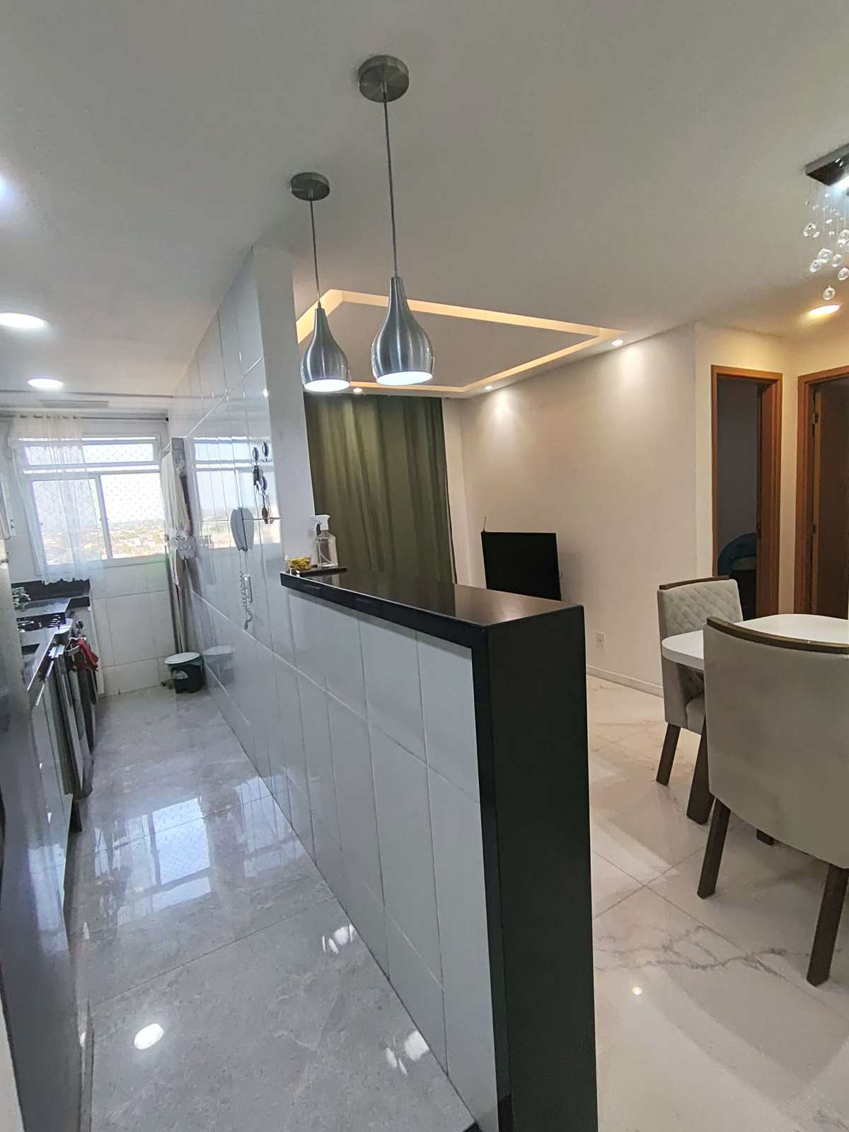 Apartamento com 2 quartos, sala, cozinha, área de serviço, banheiro e varanda. Semi mobiliado com geladeira, fogão,suggar, máquina de lavar, armários planejados na cozinha,área de serviço e banheiro, mesa com 4 cadeiras e sofá.Tem vaga de garagem. 2 cauções na entrega das chaves.